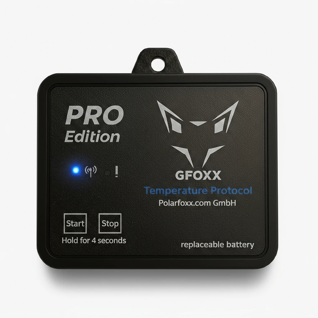 Bluetooth Datenlogger zur Temperaturdokumentation nach HACCP und GDP. Auslesbar über die kostenlose Polarfoxx APP für iOS und Android.
