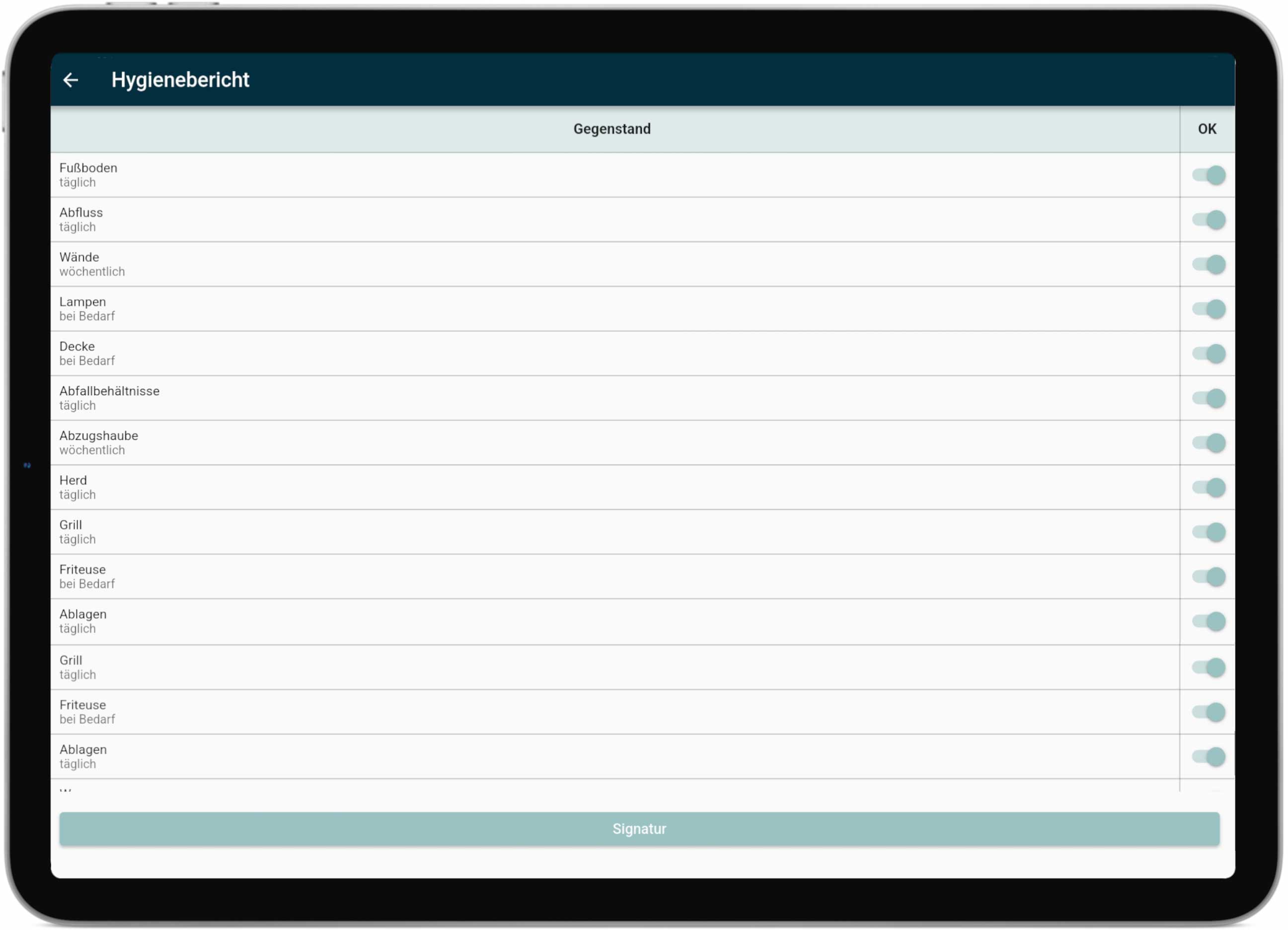 Mit unseren digitalen Lösungen für das HACCP-Berichtswesen und die Eigenkontrolle erfüllst Du Hygienevorgaben zuverlässig, effizient und vollständig papierlos.