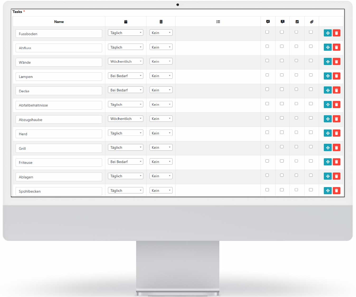 Lege einmal fest, welche Aufgaben wann erledigt werden sollen – z. B. täglich, wöchentlich, monatlich oder bei Bedarf – und speichere diese als Vorlage ab.